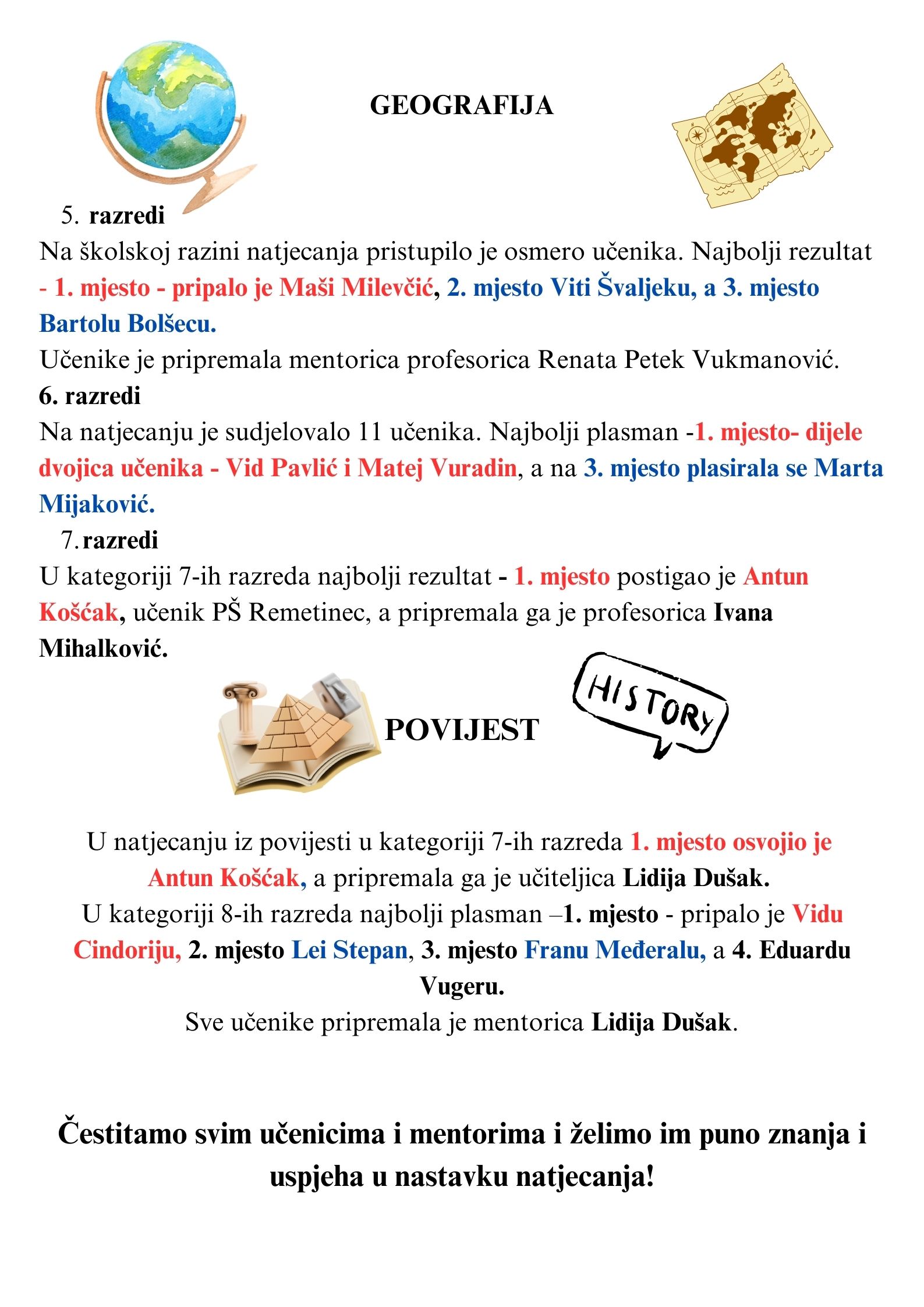 Najuspješnijima i svima koji su sudjelovali želimo da: