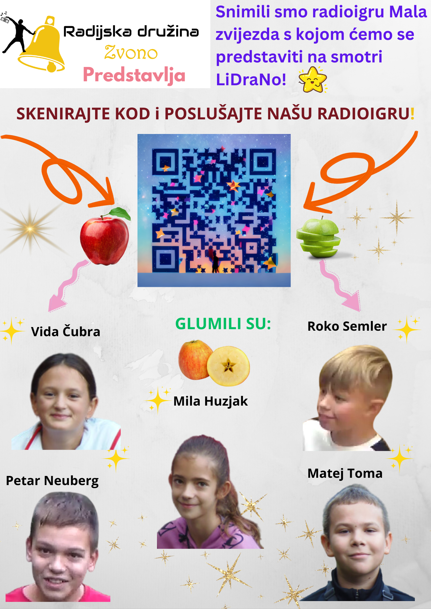 Na ovogodišnjoj Smotri LiDraNo učenice Radijske družine Zvono, redom iz 8. d razreda, predstavile su se u radijskom i novinarskom stvaralaštvu.